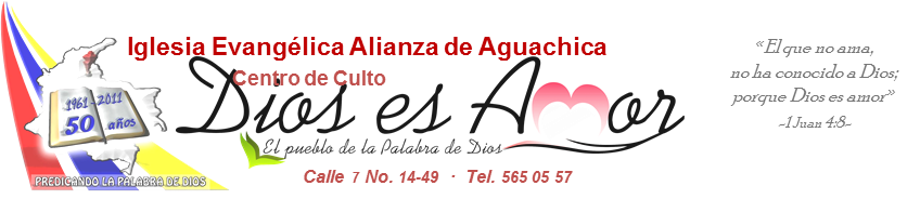 Iglesia evangélica aliancista "Dios es Amor" Calle 7 No. 14-49 Teléfono 5650557 |